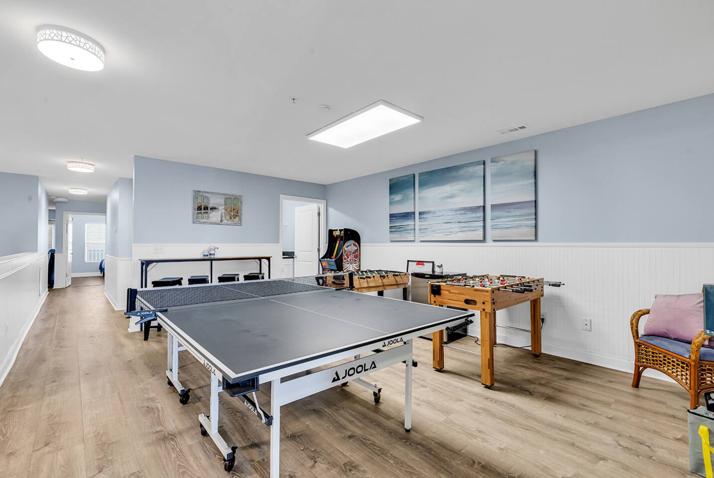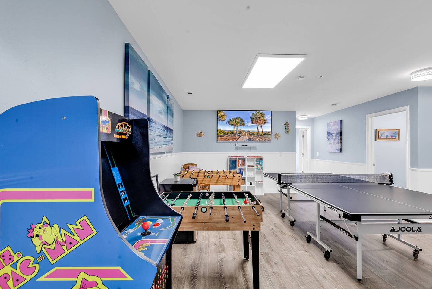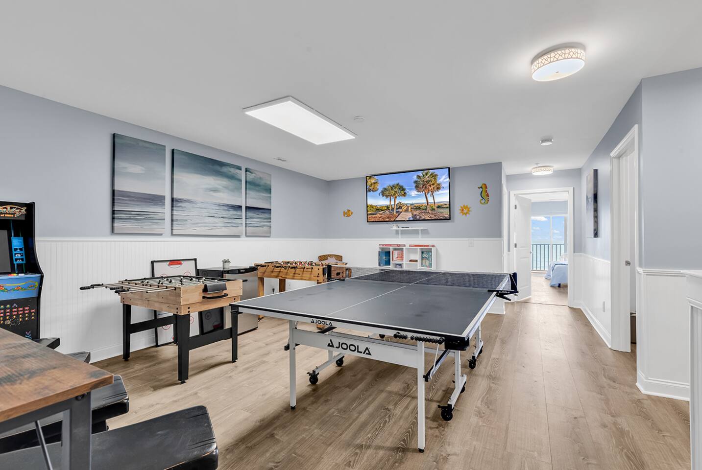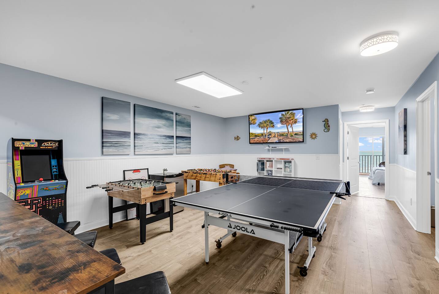 🏠 Main Floor Layout Highlights: 🛏️ Bedroom 6: Serene king bedroom with plenty of space to unwind. 🛏️ Bedroom 7: Bright and functional bunk room (sleeps 3), complete with a crib and two desks with chairs—perfect for homework, remote work, or stepping out to the balcony for ocean-view productivity. These two rooms share a newly renovated bathroom with a double vanity and modern finishes. 🍽️ The heart of the home: a fully updated kitchen with dual islands (seating for 8) and two dining tables—ideal for shared meals, games, and conversation. 🛋️ Cozy living area with plush sofas and expansive views of the sand and sea—a perfect indoor-outdoor flow. 🌊 Upper-Level Highlights: 🛏️ Bedroom 1 & Bedroom 2: Elegant king suites with ocean views and private balconies, each featuring its own en-suite full bathroom—perfect for a tranquil escape. 🛏️ Bedroom 3: King bedroom with a private full bathroom. 🛏️ Bedroom 4: Room with two full beds and a full bathroom just outside—a great setup for kids, cousins, or friends. 🛏️ Bedroom 5: A luxurious king bedroom with its own spacious master bathroom—a true retreat. 🎯 Entertainment Room: Designed for fun and relaxation with a ping pong table, foosball, TV, table games, a bar table, and a Pac-Man arcade game—ideal for family nights or rainy days. ✨ Extra Touches Throughout: All bedrooms include ceiling fans for added comfort. The home is thoughtfully curated for families, remote workers, and groups—where comfort meets coastal charm. Activities nearby ⛳ Golf Courses & Mini Golf Beachwood Golf Club – 3.6 miles | 18-hole championship golf course. Hawaiian Rumble Golf – 3.6 miles | A tropical-themed mini-golf course. Azalea Sands Golf Club – 3.8 miles | A scenic and beginner-friendly golf course. Possum Trot Golf Course – 4.0 miles | A relaxed, player-friendly golf course. Tidewater Golf Club – 5.0 miles | A top-rated coastal golf course with stunning views. Barefoot Resort & Golf – 5.5 miles | Home to four championship golf courses. Arcadian Shores Golf Club – 8.5 miles | A challenging course designed by Rees Jones. Dunes Golf & Beach Club – 12 miles | One of the top-ranked golf courses in Myrtle Beach. Myrtlewood Golf Club – 13 miles | Two beautiful 18-hole courses by the Intracoastal Waterway. Pine Lakes Country Club – 14 miles | The "Granddaddy" of Myrtle Beach golf, opened in 1927. 🎭 Live Entertainment & Shows House of Blues – 4.5 miles | A live music venue with great food and concerts. Alabama Theatre – 4.3 miles | Family-friendly live performances with music and comedy. The Carolina Opry – 9.5 miles | A premier music and variety show theater. Medieval Times Dinner & Tournament – 17 miles | A live-action medieval jousting show with a meal. Legends in Concert – 15 miles | A tribute artist show featuring legendary music icons. GTS Theatre – 17 miles | An intimate venue featuring Motown, comedy, and variety shows. 🎢 Family-Friendly Attractions & Arcades Alligator Adventure – 4.1 miles | A reptile park with alligators, crocodiles, and exotic animals. Pirates Voyage Dinner & Show – 8.9 miles | A thrilling pirate-themed dinner show. Myrtle Waves Water Park – 16 miles | The largest water park in South Carolina. WonderWorks Myrtle Beach – 15.5 miles | An interactive science museum with hands-on exhibits. Fun Plaza Arcade – 15 miles | A classic boardwalk arcade with vintage and modern games. LuLu’s Beach Arcade & Ropes Course – 4.0 miles | Arcade fun and an exciting ropes course. 810 Billiards & Bowling North Myrtle Beach – 3.5 miles | Bowling, arcade games, and great food. 🛍️ Shopping & Dining Barefoot Landing – 4.0 miles | A shopping and dining complex with boutiques and restaurants. Tanger Outlets Myrtle Beach Hwy 17 – 9.5 miles | Premium outlet shopping with major brand discounts. Broadway at the Beach – 15 miles | Shopping, restaurants, nightlife, and attractions. The Market Common – 18 miles | Upscale shopping and dining district. 🌊 Outdoor & Nature Attractions Cherry Grove Beach & Pier – 3.0 miles | A popular fishing pier with beautiful ocean views. Heritage Shores Nature Preserve – 4.2 miles | Walking trails, wildlife viewing, and fishing. North Myrtle Beach Park & Sports Complex – 6.0 miles | Playgrounds, trails, and sports fields. Myrtle Beach State Park – 19 miles | A scenic beach park with trails, fishing, and camping. 🍷 Breweries, Wineries & Nightlife Duplin Winery – 4.4 miles | Muscadine wine tastings and tours. New South Brewing – 15 miles | A local craft brewery with tastings. Tin Roof Myrtle Beach – 15 miles | A rooftop bar with live music and ocean views. The Bowery – 15.5 miles | A historic honky-tonk bar with live country music. 🛒 Supermarkets Boulineau's Foods Plus – 2.5 miles | Local grocery store with fresh produce, meats, and seafood. 212 Sea Mountain Highway, North Myrtle Beach, SC 29582 Food Lion – 1.2 miles | Supermarket chain with fresh produce and household essentials. 1000 Highway 17 N, North Myrtle Beach, SC 29582 Walmart Supercenter – 1.5 miles | Large retail store with groceries, electronics, and home goods. 550 Highway 17 N, North Myrtle Beach, SC 29582 💆♀️ Spas & Nail Salons Barefoot Landing Nails and Spa – 4.5 miles | Professional nail and spa services in a relaxing environment. 4720 Highway 17 S, North Myrtle Beach, SC 29582 CC Nail Salon – 1.3 miles | Offers pampered nail services with a calming atmosphere. 1516 Highway 17 N Unit 3 & 4, North Myrtle Beach, SC 29582 Diva Nails – 1.1 miles | High-quality nail services in a stylish and comfortable setting. 1208 Highway 17 N, North Myrtle Beach, SC 29582 Noire Nail Bar – 1.0 mile | Luxury nail salon offering premium nail care services. 771 Main St, North Myrtle Beach, SC 29582