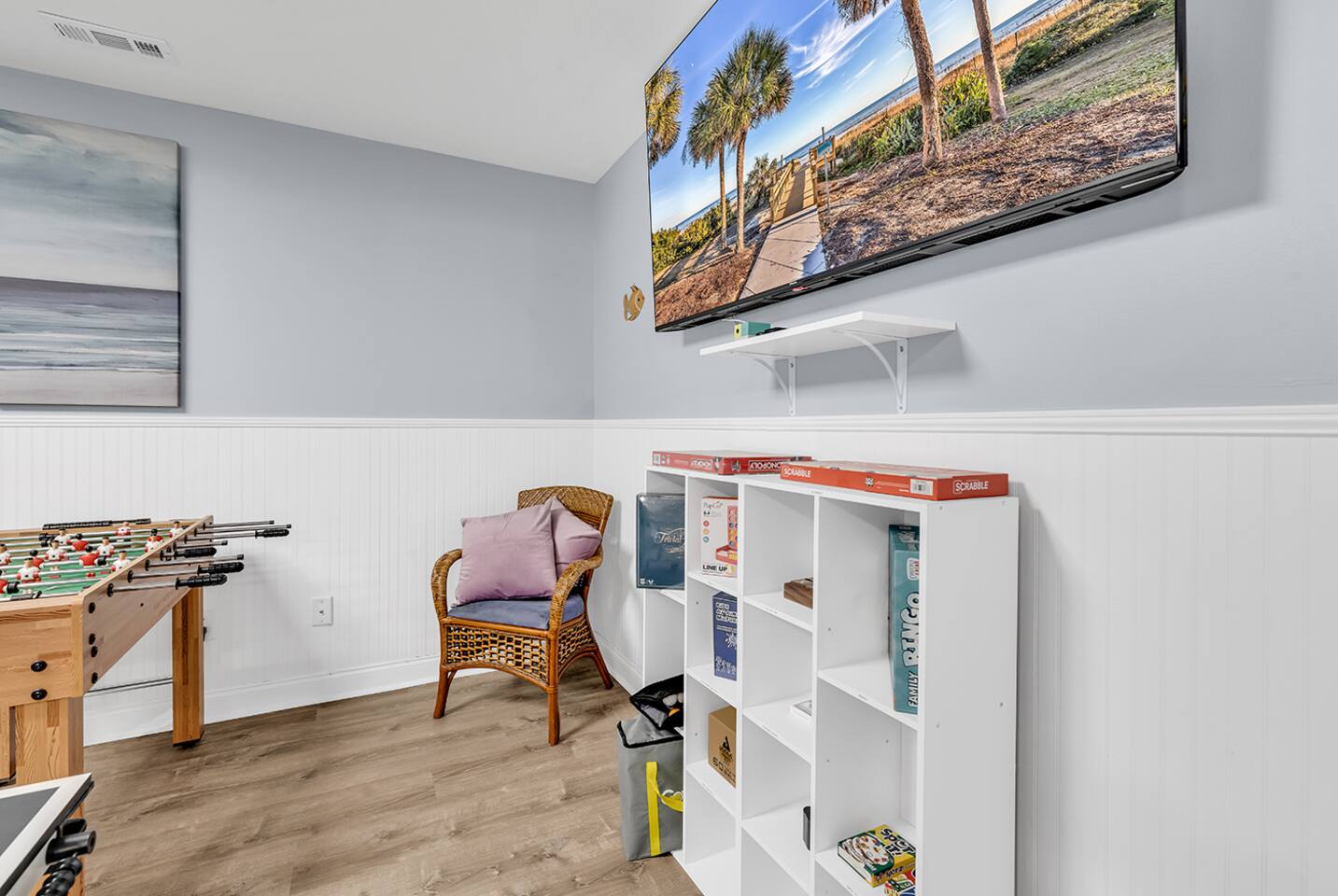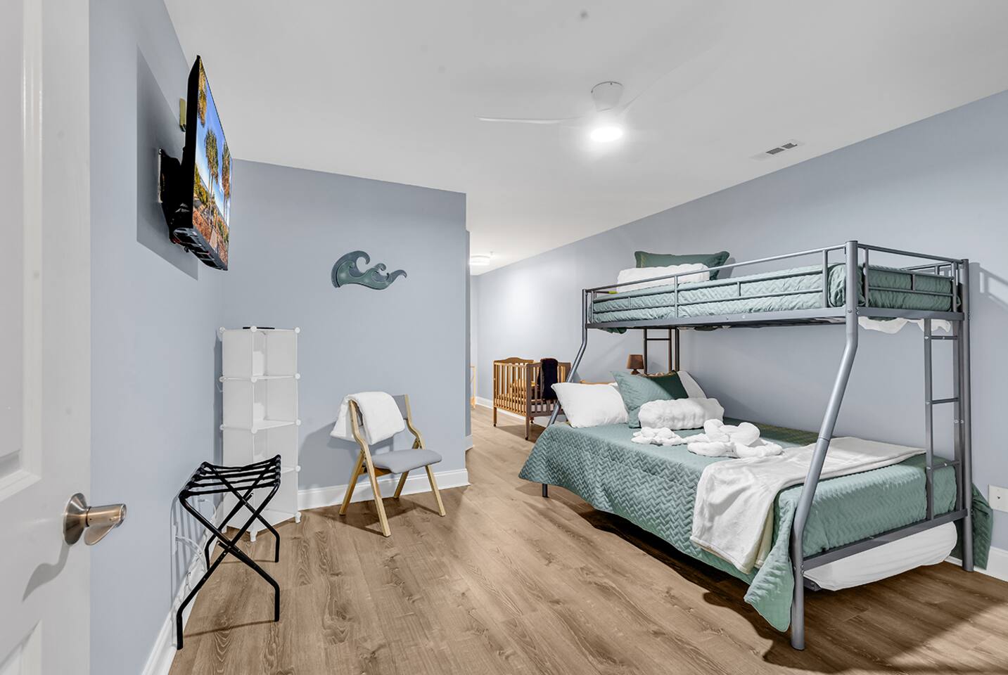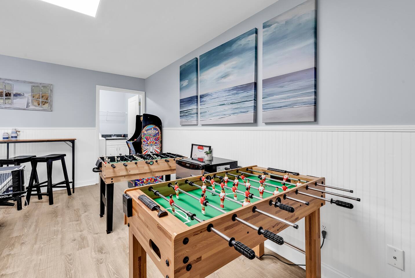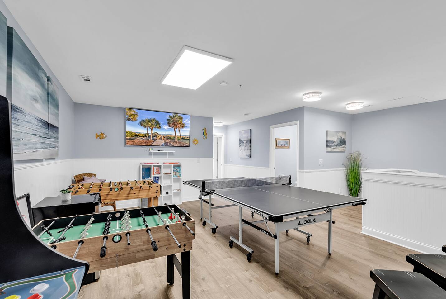 🏠 Main Floor Layout Highlights: 🛏️ Bedroom 6: Serene king bedroom with plenty of space to unwind. 🛏️ Bedroom 7: Bright and functional bunk room (sleeps 3), complete with a crib and two desks with chairs—perfect for homework, remote work, or stepping out to the balcony for ocean-view productivity. These two rooms share a newly renovated bathroom with a double vanity and modern finishes. 🍽️ The heart of the home: a fully updated kitchen with dual islands (seating for 8) and two dining tables—ideal for shared meals, games, and conversation. 🛋️ Cozy living area with plush sofas and expansive views of the sand and sea—a perfect indoor-outdoor flow. 🌊 Upper-Level Highlights: 🛏️ Bedroom 1 & Bedroom 2: Elegant king suites with ocean views and private balconies, each featuring its own en-suite full bathroom—perfect for a tranquil escape. 🛏️ Bedroom 3: King bedroom with a private full bathroom. 🛏️ Bedroom 4: Room with two full beds and a full bathroom just outside—a great setup for kids, cousins, or friends. 🛏️ Bedroom 5: A luxurious king bedroom with its own spacious master bathroom—a true retreat. 🎯 Entertainment Room: Designed for fun and relaxation with a ping pong table, foosball, TV, table games, a bar table, and a Pac-Man arcade game—ideal for family nights or rainy days. ✨ Extra Touches Throughout: All bedrooms include ceiling fans for added comfort. The home is thoughtfully curated for families, remote workers, and groups—where comfort meets coastal charm. Activities nearby ⛳ Golf Courses & Mini Golf Beachwood Golf Club – 3.6 miles | 18-hole championship golf course. Hawaiian Rumble Golf – 3.6 miles | A tropical-themed mini-golf course. Azalea Sands Golf Club – 3.8 miles | A scenic and beginner-friendly golf course. Possum Trot Golf Course – 4.0 miles | A relaxed, player-friendly golf course. Tidewater Golf Club – 5.0 miles | A top-rated coastal golf course with stunning views. Barefoot Resort & Golf – 5.5 miles | Home to four championship golf courses. Arcadian Shores Golf Club – 8.5 miles | A challenging course designed by Rees Jones. Dunes Golf & Beach Club – 12 miles | One of the top-ranked golf courses in Myrtle Beach. Myrtlewood Golf Club – 13 miles | Two beautiful 18-hole courses by the Intracoastal Waterway. Pine Lakes Country Club – 14 miles | The "Granddaddy" of Myrtle Beach golf, opened in 1927. 🎭 Live Entertainment & Shows House of Blues – 4.5 miles | A live music venue with great food and concerts. Alabama Theatre – 4.3 miles | Family-friendly live performances with music and comedy. The Carolina Opry – 9.5 miles | A premier music and variety show theater. Medieval Times Dinner & Tournament – 17 miles | A live-action medieval jousting show with a meal. Legends in Concert – 15 miles | A tribute artist show featuring legendary music icons. GTS Theatre – 17 miles | An intimate venue featuring Motown, comedy, and variety shows. 🎢 Family-Friendly Attractions & Arcades Alligator Adventure – 4.1 miles | A reptile park with alligators, crocodiles, and exotic animals. Pirates Voyage Dinner & Show – 8.9 miles | A thrilling pirate-themed dinner show. Myrtle Waves Water Park – 16 miles | The largest water park in South Carolina. WonderWorks Myrtle Beach – 15.5 miles | An interactive science museum with hands-on exhibits. Fun Plaza Arcade – 15 miles | A classic boardwalk arcade with vintage and modern games. LuLu’s Beach Arcade & Ropes Course – 4.0 miles | Arcade fun and an exciting ropes course. 810 Billiards & Bowling North Myrtle Beach – 3.5 miles | Bowling, arcade games, and great food. 🛍️ Shopping & Dining Barefoot Landing – 4.0 miles | A shopping and dining complex with boutiques and restaurants. Tanger Outlets Myrtle Beach Hwy 17 – 9.5 miles | Premium outlet shopping with major brand discounts. Broadway at the Beach – 15 miles | Shopping, restaurants, nightlife, and attractions. The Market Common – 18 miles | Upscale shopping and dining district. 🌊 Outdoor & Nature Attractions Cherry Grove Beach & Pier – 3.0 miles | A popular fishing pier with beautiful ocean views. Heritage Shores Nature Preserve – 4.2 miles | Walking trails, wildlife viewing, and fishing. North Myrtle Beach Park & Sports Complex – 6.0 miles | Playgrounds, trails, and sports fields. Myrtle Beach State Park – 19 miles | A scenic beach park with trails, fishing, and camping. 🍷 Breweries, Wineries & Nightlife Duplin Winery – 4.4 miles | Muscadine wine tastings and tours. New South Brewing – 15 miles | A local craft brewery with tastings. Tin Roof Myrtle Beach – 15 miles | A rooftop bar with live music and ocean views. The Bowery – 15.5 miles | A historic honky-tonk bar with live country music. 🛒 Supermarkets Boulineau's Foods Plus – 2.5 miles | Local grocery store with fresh produce, meats, and seafood. 212 Sea Mountain Highway, North Myrtle Beach, SC 29582 Food Lion – 1.2 miles | Supermarket chain with fresh produce and household essentials. 1000 Highway 17 N, North Myrtle Beach, SC 29582 Walmart Supercenter – 1.5 miles | Large retail store with groceries, electronics, and home goods. 550 Highway 17 N, North Myrtle Beach, SC 29582 💆♀️ Spas & Nail Salons Barefoot Landing Nails and Spa – 4.5 miles | Professional nail and spa services in a relaxing environment. 4720 Highway 17 S, North Myrtle Beach, SC 29582 CC Nail Salon – 1.3 miles | Offers pampered nail services with a calming atmosphere. 1516 Highway 17 N Unit 3 & 4, North Myrtle Beach, SC 29582 Diva Nails – 1.1 miles | High-quality nail services in a stylish and comfortable setting. 1208 Highway 17 N, North Myrtle Beach, SC 29582 Noire Nail Bar – 1.0 mile | Luxury nail salon offering premium nail care services. 771 Main St, North Myrtle Beach, SC 29582