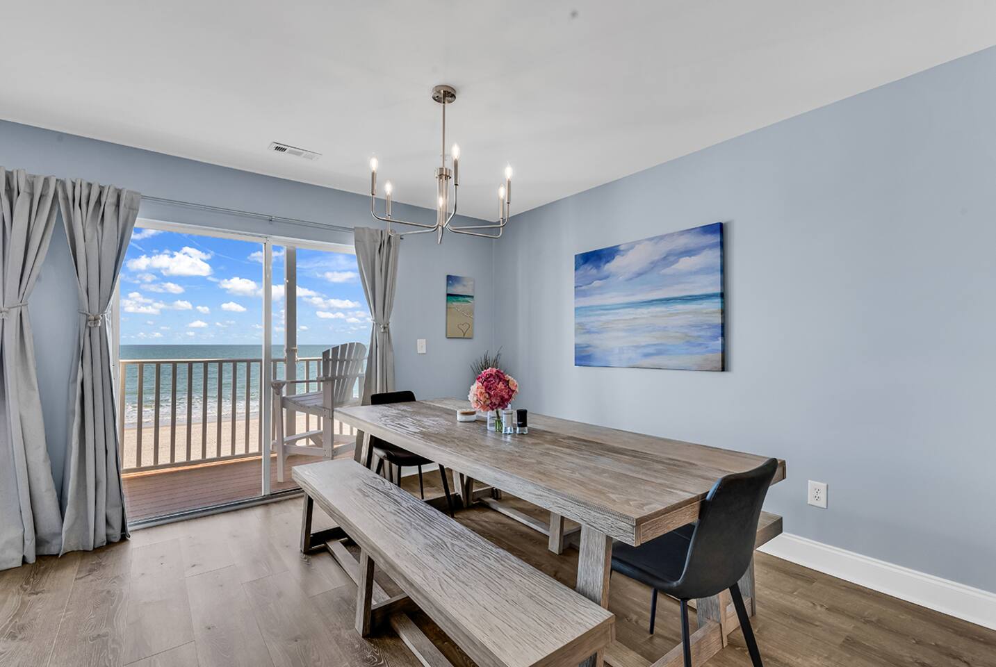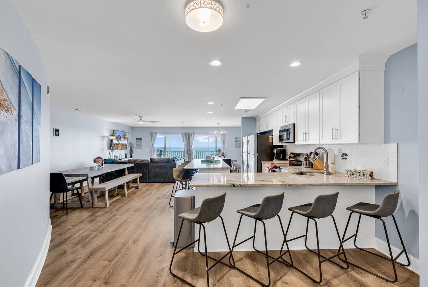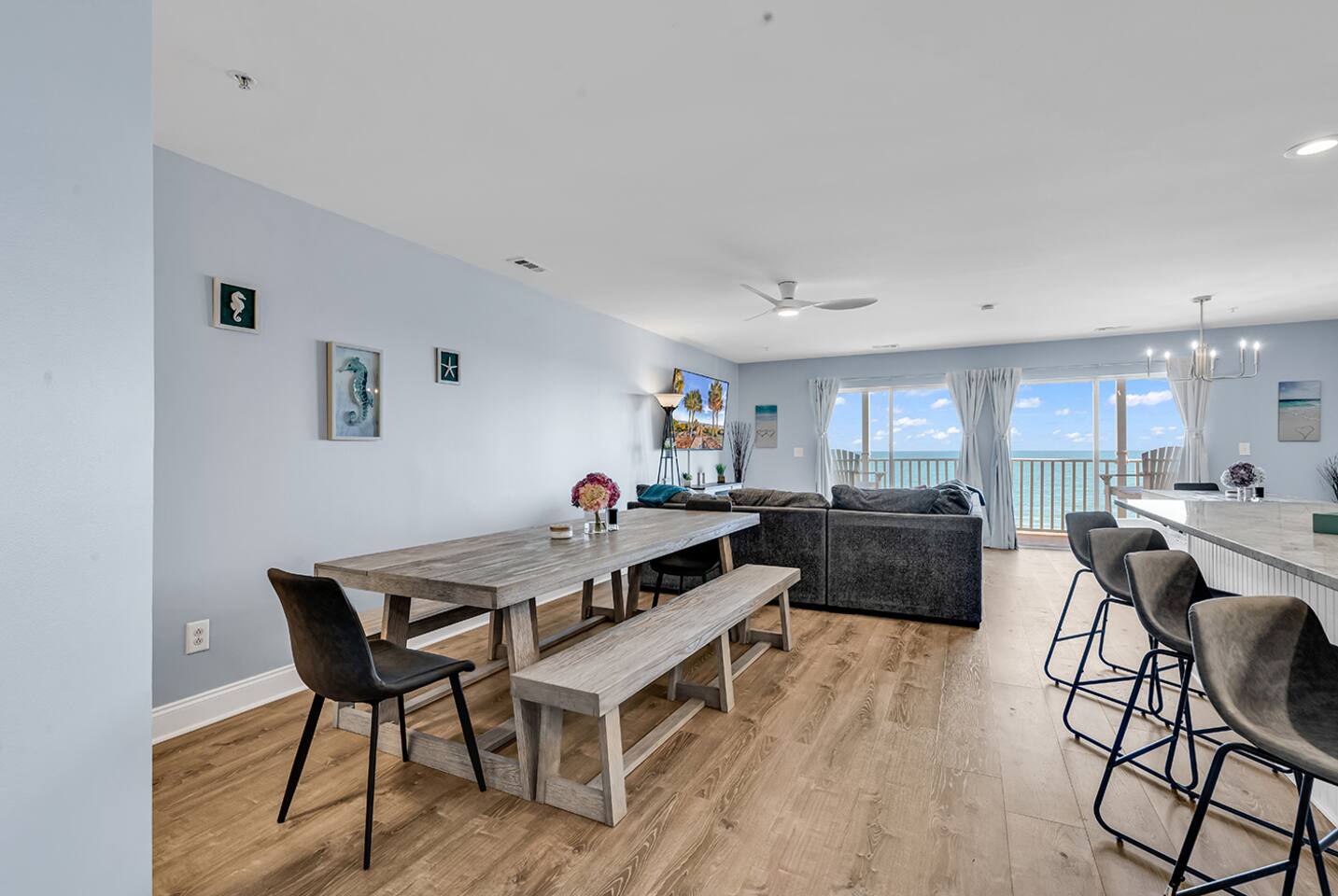 Welcome to Alba di Mare — your oceanfront haven where comfort meets coastal charm. This fully renovated, top-floor condo offers 7 bedrooms, 6.5 bathrooms, and 3,500 sq. ft. of thoughtfully designed space, ideal for families, friends, reunions, or golf getaways. Wake up to unobstructed ocean views and enjoy your morning coffee on the balcony as the sun rises over the Atlantic. Inside, you’ll find a beautifully updated kitchen, TVs in every bedroom, high-speed Wi-Fi, and plenty of room for everyone to relax and recharge. Just steps from the sand, you’ll have full access to the building’s pool, hot tub, elevator, and parking for four cars. Whether you're planning beach days, rounds of golf, or sunset dinners nearby, everything you need is within reach. This isn’t just a place to stay — it’s where memories are made. Come enjoy the simple pleasures of coastal living at Alba di Mare.