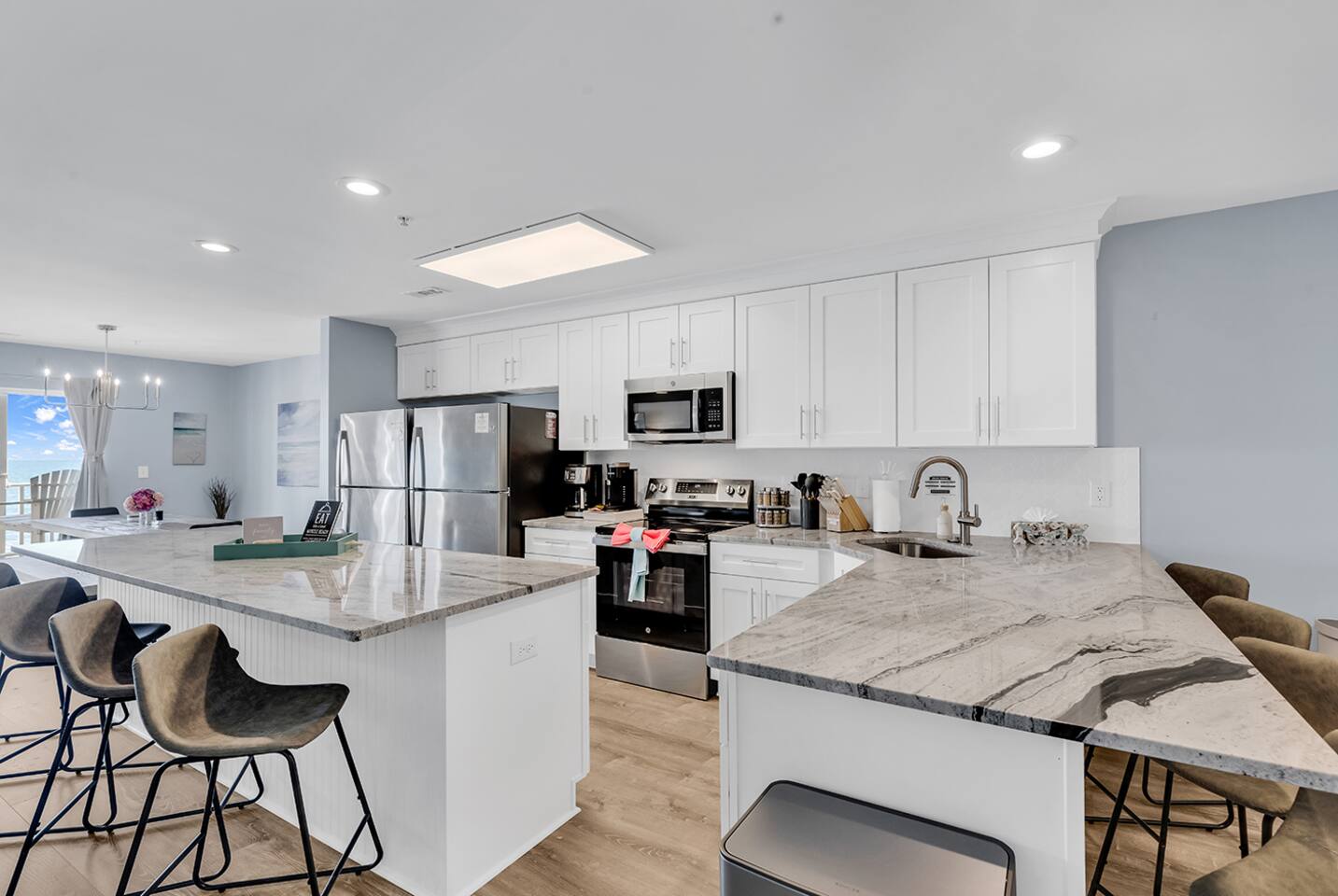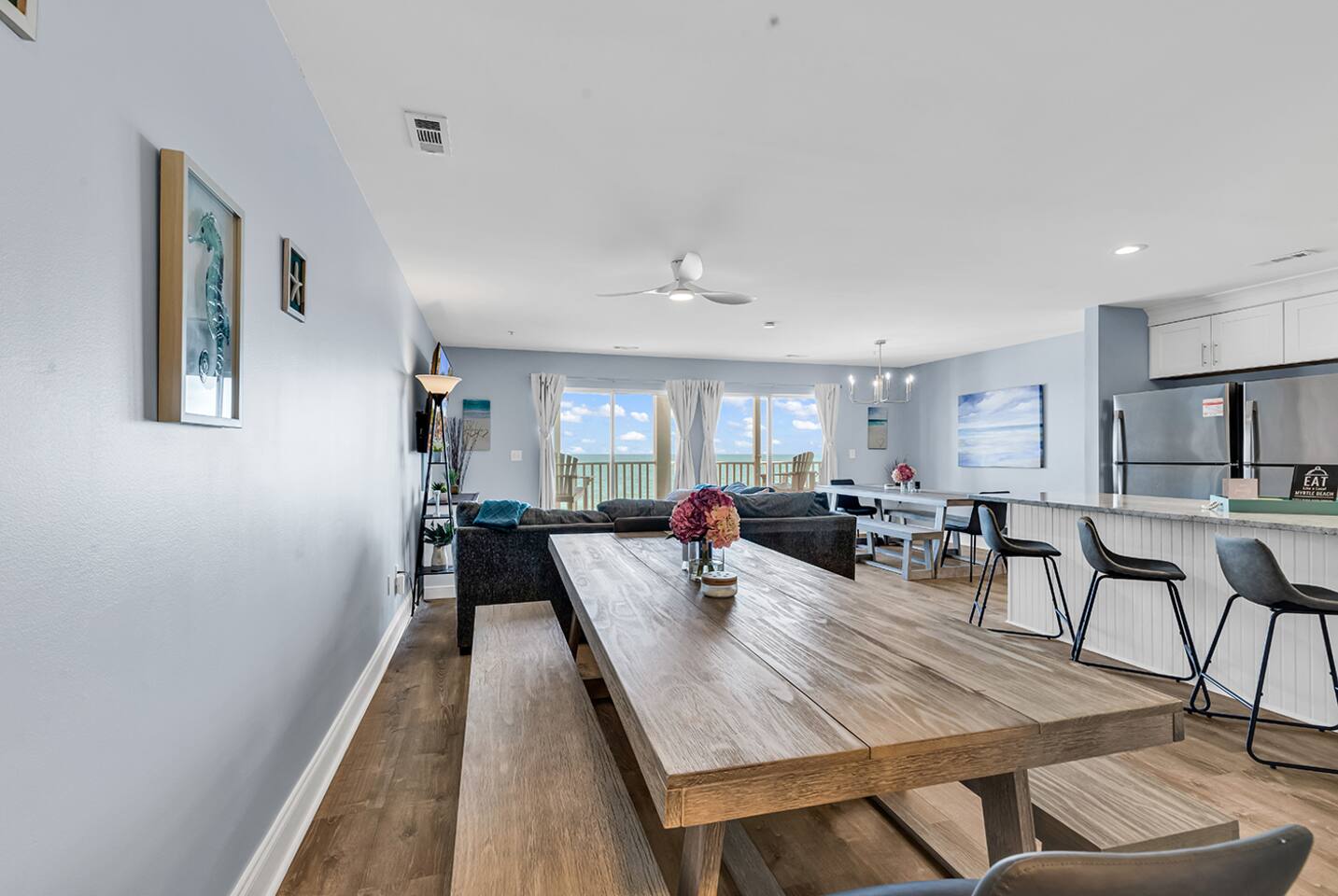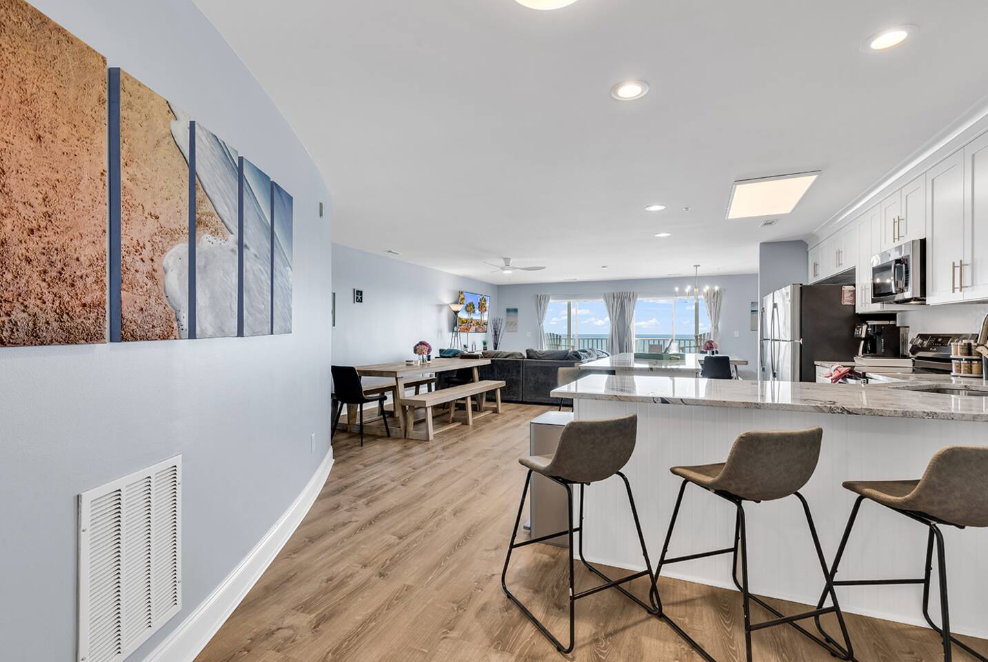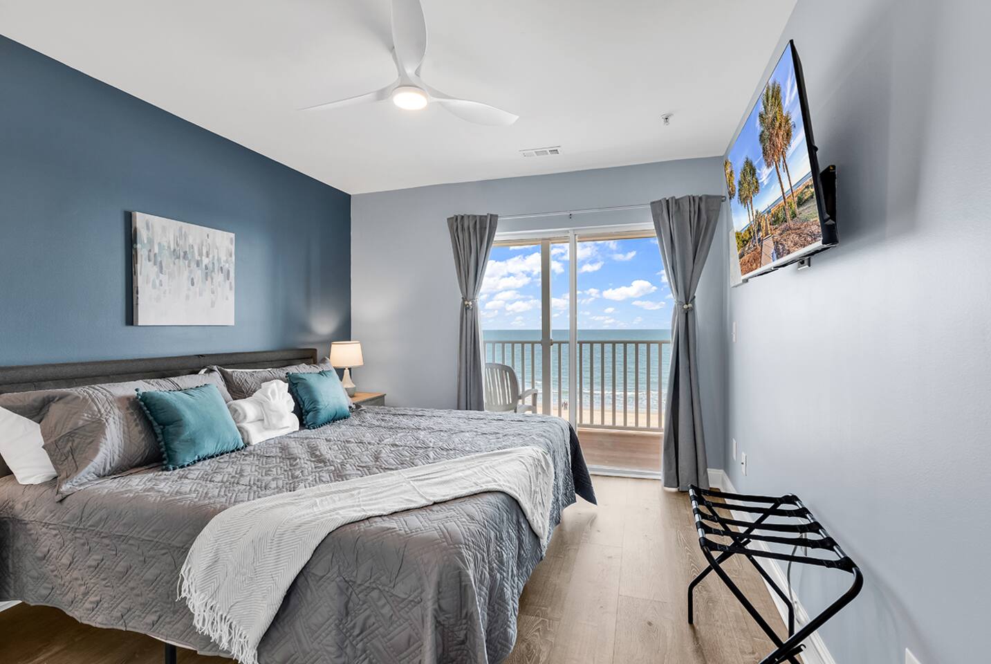 Welcome to Alba di Mare — your oceanfront haven where comfort meets coastal charm. This fully renovated, top-floor condo offers 7 bedrooms, 6.5 bathrooms, and 3,500 sq. ft. of thoughtfully designed space, ideal for families, friends, reunions, or golf getaways. Wake up to unobstructed ocean views and enjoy your morning coffee on the balcony as the sun rises over the Atlantic. Inside, you’ll find a beautifully updated kitchen, TVs in every bedroom, high-speed Wi-Fi, and plenty of room for everyone to relax and recharge. Just steps from the sand, you’ll have full access to the building’s pool, hot tub, elevator, and parking for four cars. Whether you're planning beach days, rounds of golf, or sunset dinners nearby, everything you need is within reach. This isn’t just a place to stay — it’s where memories are made. Come enjoy the simple pleasures of coastal living at Alba di Mare.