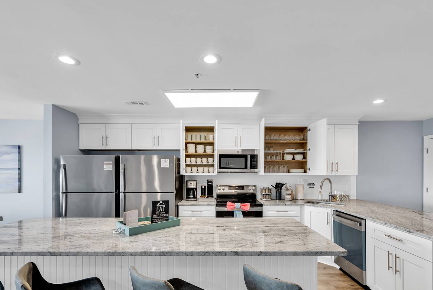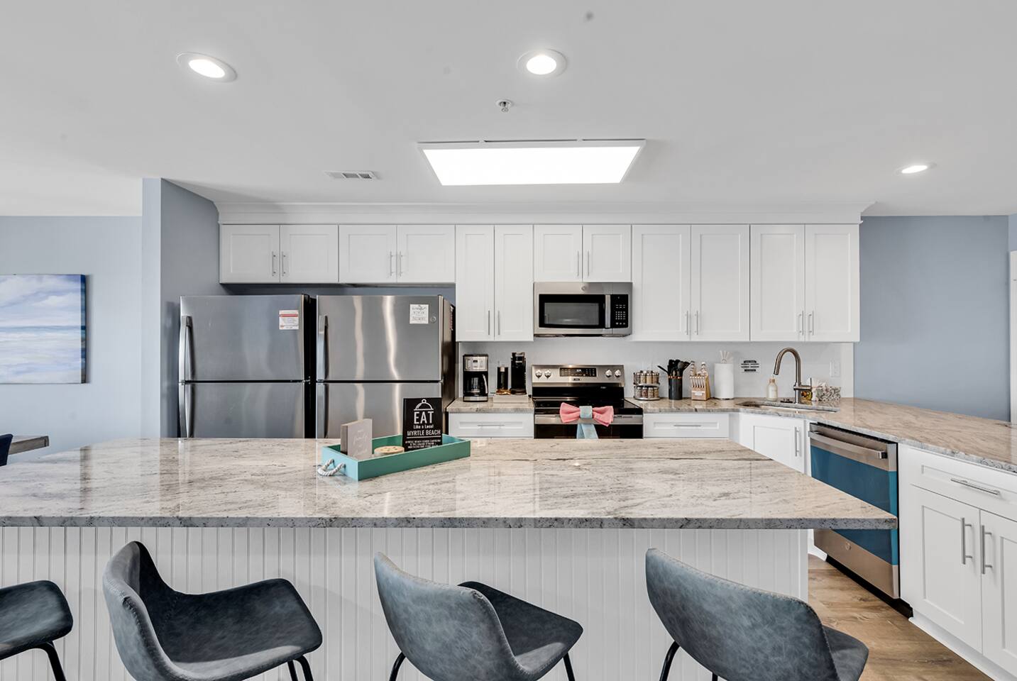 Experience simple pleasures by the sea at Alba di Mare, a fully renovated 7-bedroom, 6.5-bath oceanfront condo in North Myrtle Beach. This spacious 3,500 sq. ft. retreat blends luxury and comfort with breathtaking ocean views, a modern kitchen, TVs in every bedroom, and high-speed Wi-Fi — perfect for families and large groups. Enjoy full access to the outdoor pool, hot tub, elevator, and parking for four vehicles. Steps from the beach and close to golf, dining, and attractions.